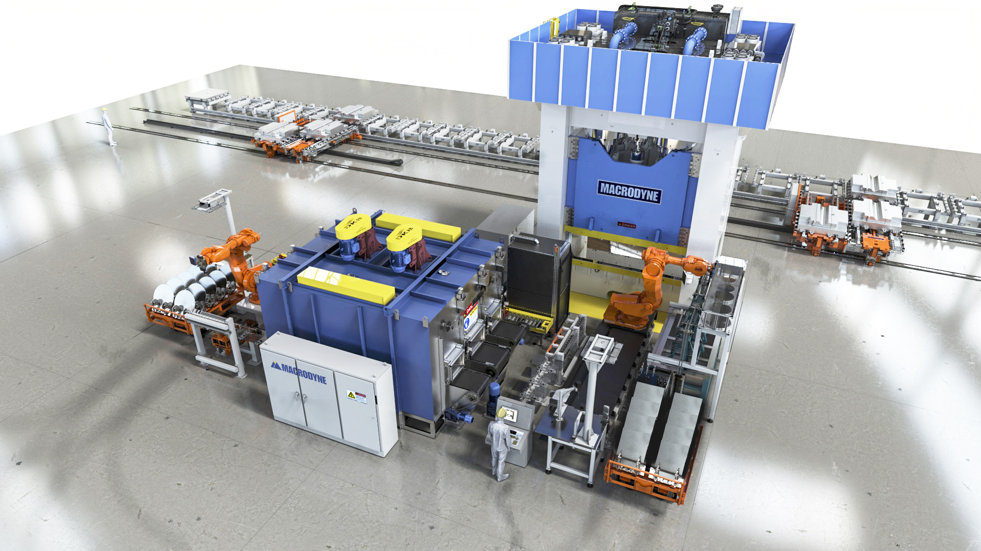Macrodyne delivers the entire line – press + automation + QC and material handling.